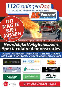 Op zaterdag 11 juni 2022 vindt voor de derde keer de 112GroningenDag plaats in-en om de MartiniPlaza in Groningen. Van 10.00 tot 17.00 uur (3 euro entree,zie poster) zijn er diverse hulpverleningsinstanties en geven talrijke spectaculaire demonstraties van vele hulpdiensten en er is een een grote informatie / veiligheidsmarkt. Op het Horecaplein kunt terecht voor een hapje en een drankje. U bent van harte welkom!! De 112GroningenDag wordt mede mogelijk gemaakt door hoofdsponsor A&S Vancare en subsponsor 101BHV.nl.