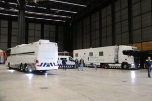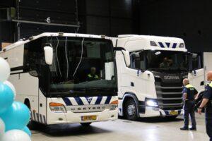 De allernieuwste aanvulling van het wagenpark van de Dienst Vervoer en Ondersteuning (DV&O) is het Mobiel Commando- en Uitwijkvoertuigvoertuig Logistiek (MCUL). Dit ruim 16 meter lange voertuig is een prachtige aanwinst als gaat om ondersteuning van de politie bij tal van evenementen zoals festivals of risicovolle voetbalwedstrijden. Ook bij evacuaties of grootschalige Landelijke Bijzondere Bijstand-acties in bijvoorbeeld inrichtingen kan het commandocentrum van groot nut zijn.”