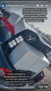 De agenten hebben de bestuurder een stopteken gegeven. “De Verkeersofficier gaat zich buigen over een bekeuring. Daarnaast is duidelijk gemaakt dat de bestuurder op deze manier absoluut niet verder mag rijden.”