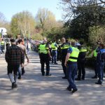 Een dertigtal politieagenten en boa’s van de gemeente begonnen rond 15.45 uur met het ‘leegvegen’ van het park. Veel mensen mochten blijven zitten, maar een groot gedeelte koos ervoor om een andere plek in de Stad op te zoeken. Aldus Oogtv.nl.