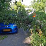 De gemeente kwam vanmiddag ter plaatse om de gevallen tak van de weg en van het voertuig te verwijderen. De weg was tijdelijk afgesloten. De personenauto raakte bij het incident beschadigd.
