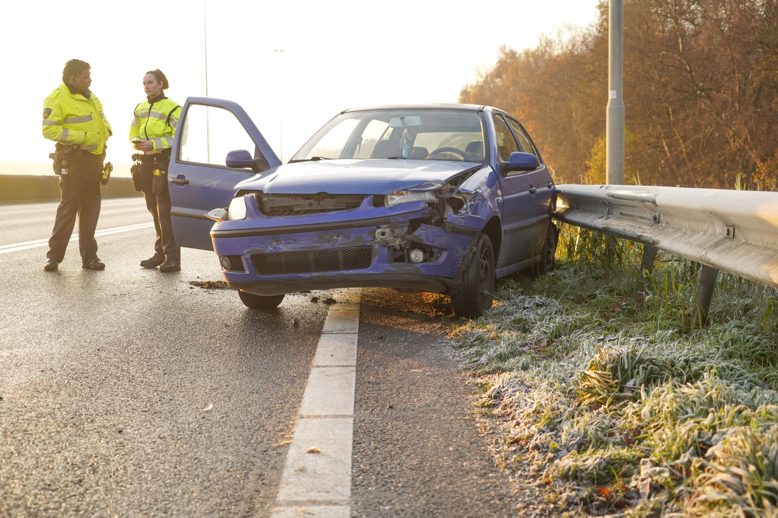 Op de plek van het ongeluk was het zaterdagochtend glad. De auto was in de slip geraakt en tegen de vangrail aangebotst.
