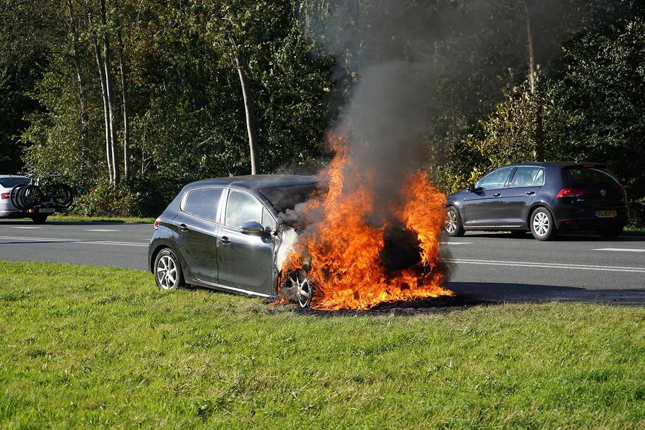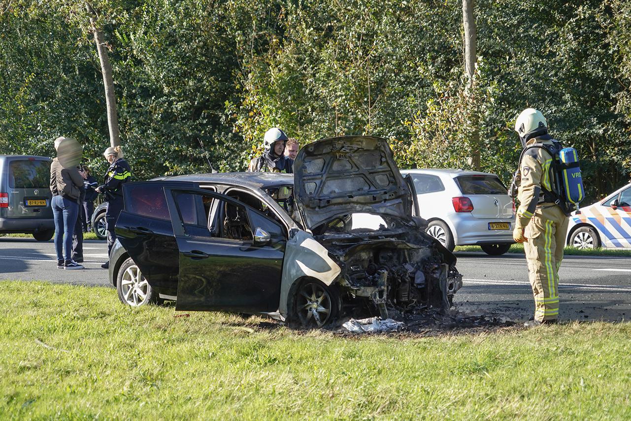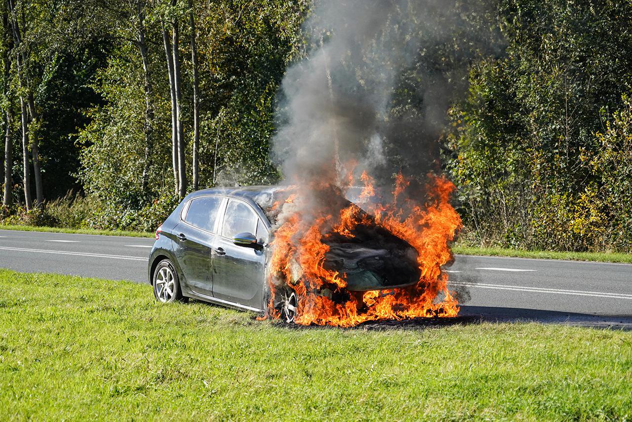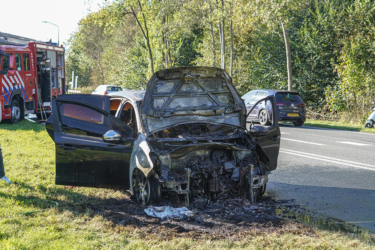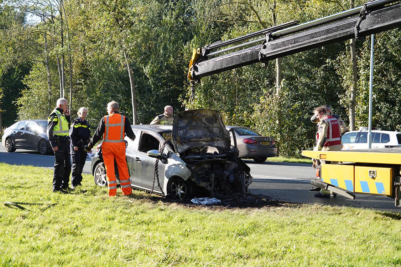 De Punt – Een personenauto is zondagmiddag verwoest door brand op de Groningerstraat, nabij de afrit van de A28, bij De Punt.