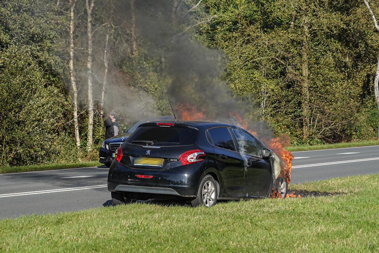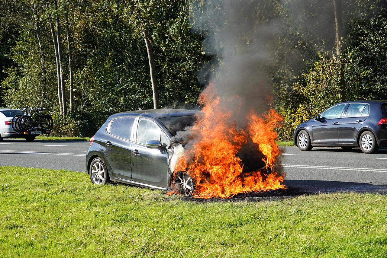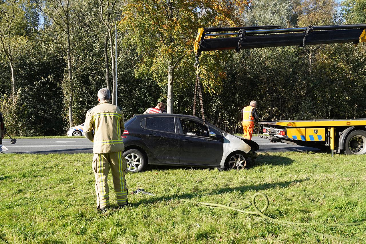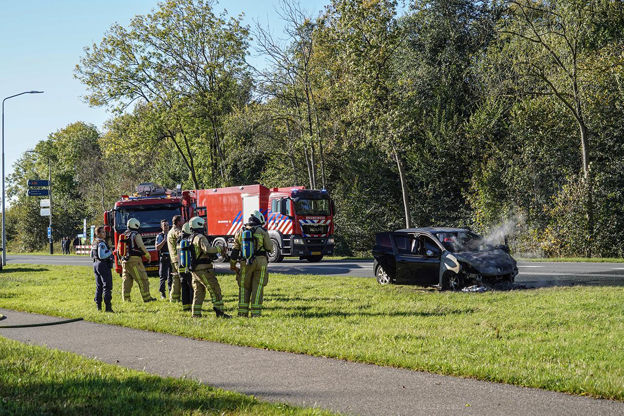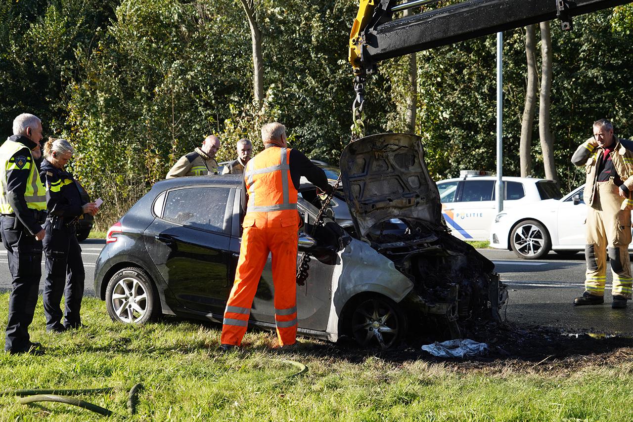De Punt – Een personenauto is zondagmiddag verwoest door brand op de Groningerstraat, nabij de afrit van de A28, bij De Punt.