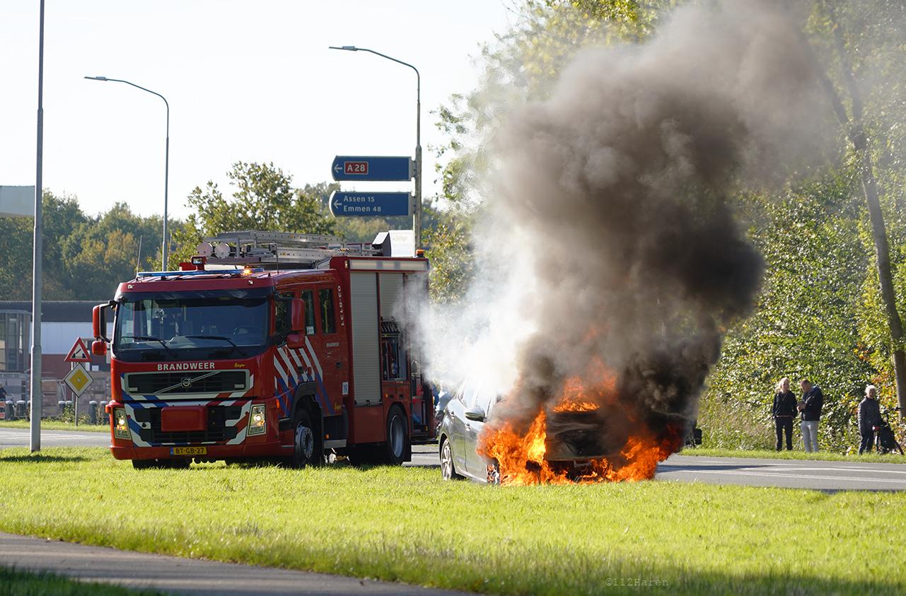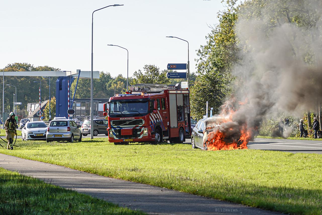 De brandweer van Eelde werd omstreeks 14:05 uur gealarmeerd met een tankautospuit en een waterwagen. Bij aankomst bleek een personenauto al volledig in de brand te staan. De brandweer heeft het vuur geblust maar kon niet voorkomen dat de personenauto uitbrandde. De oorzaak van de brand is niet bekend. Vanwege de brand was een deel van de Groningerstraat tijdelijk afgesloten voor het verkeer. Een berger heeft de personenauto weggesleept.