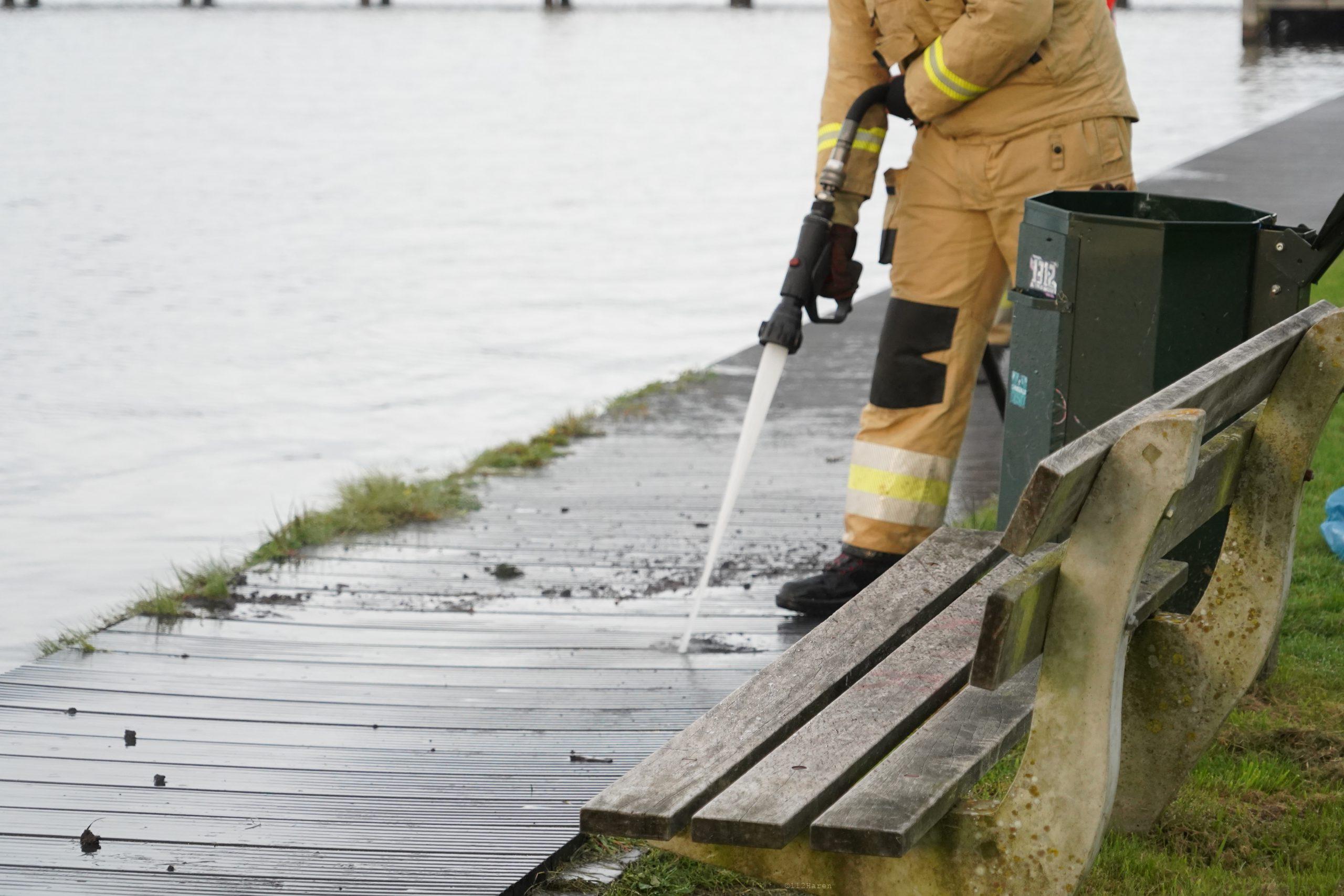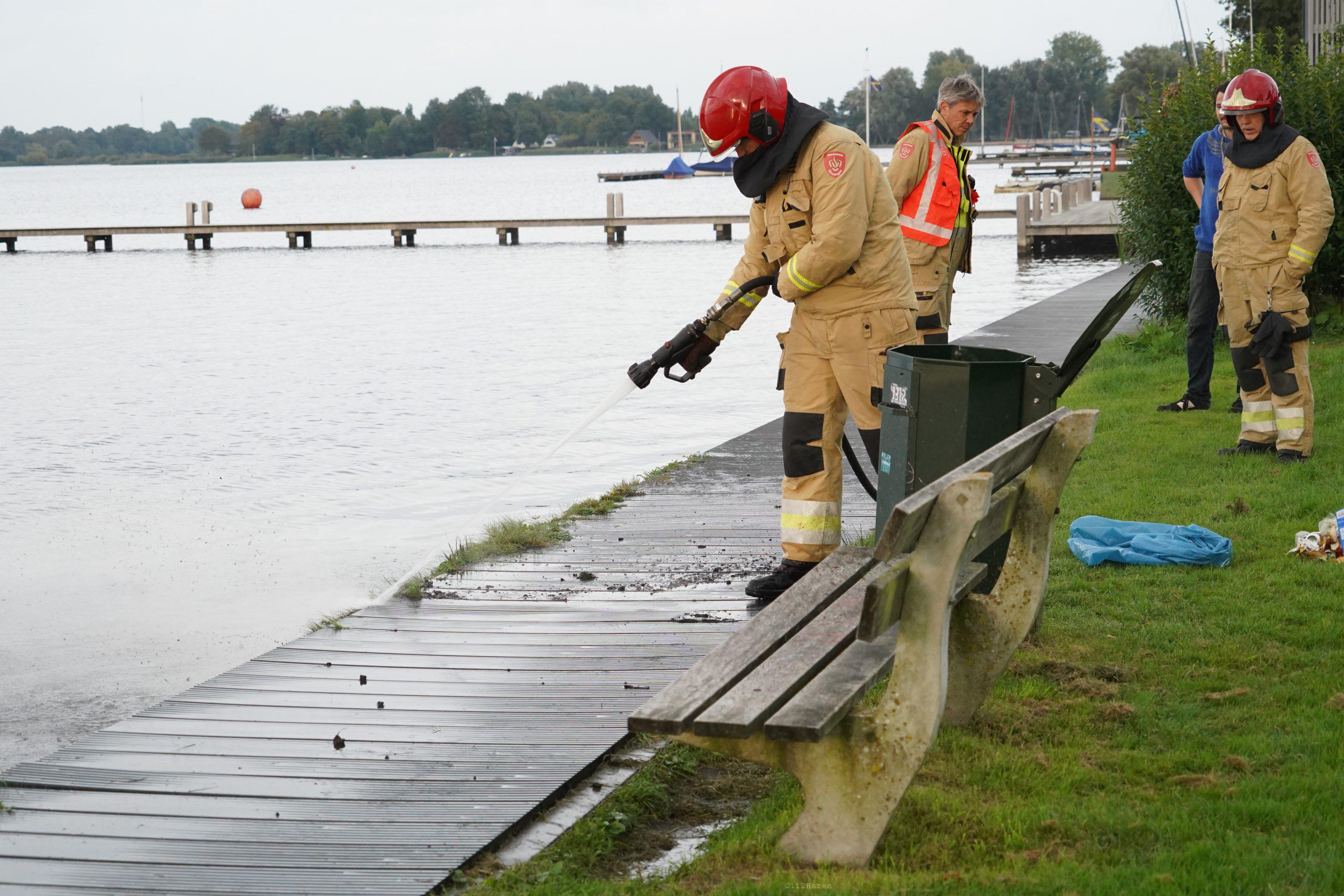 Door nog onbekende oorzaak was er een brand ontstaan in een prullenbak. Een omstander had 112 gebeld en water in een vuilniszak gedaan om te blussen en te helpen. Om de begroeiing te blussen werden er ook verschillende planken verwijderd.