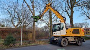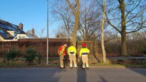 Bij aankomst van de brandweer stond de boom nog rechtop. De brandweer heeft in overleg met de gemeente de straat afgezet voor het overige verkeer. De gemeente heeft een aannemer uit de buurt opgeroepen om de boom te verwijderen. De boom is inmiddels verwijderd en het gevaar is geweken. De Mellensteeg is weer toegankelijk voor het verkeer.