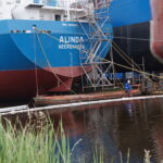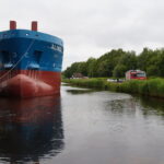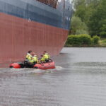 Er zou olie lekken uit 1 van de schepen, Hoe dit had kunnen gebeuren is onbekend. Waterschap is bang dat de olie het Winschoterdiep in stroomt, Hierdoor ligt de haven van Waterhuizen dicht.
