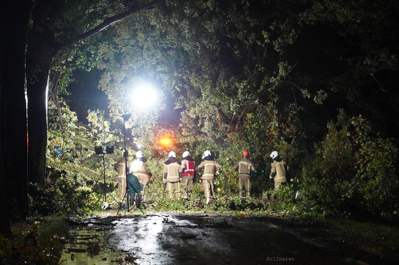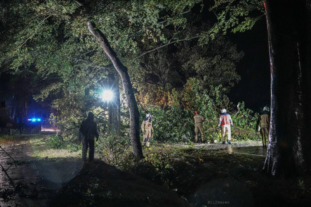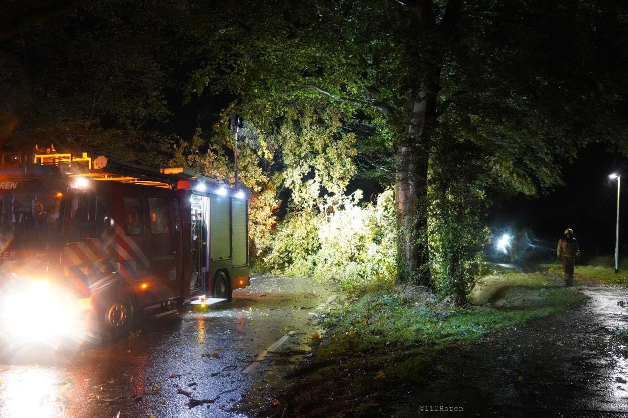 Daar bleek door de wind verschillende bomen te zijn omgewaaid. Ook waren er meerdere grote takken los gewaaid. De brandweer heeft de takken van het wegdek gehaald en de bomen in stukken gezaagd. De gemeente Groningen kwam met twee vrachtwagens met een laadbak ter plaatse om alle takken en stukken hout af te voeren. De weg was gedurende het incident afgesloten voor het verkeer.