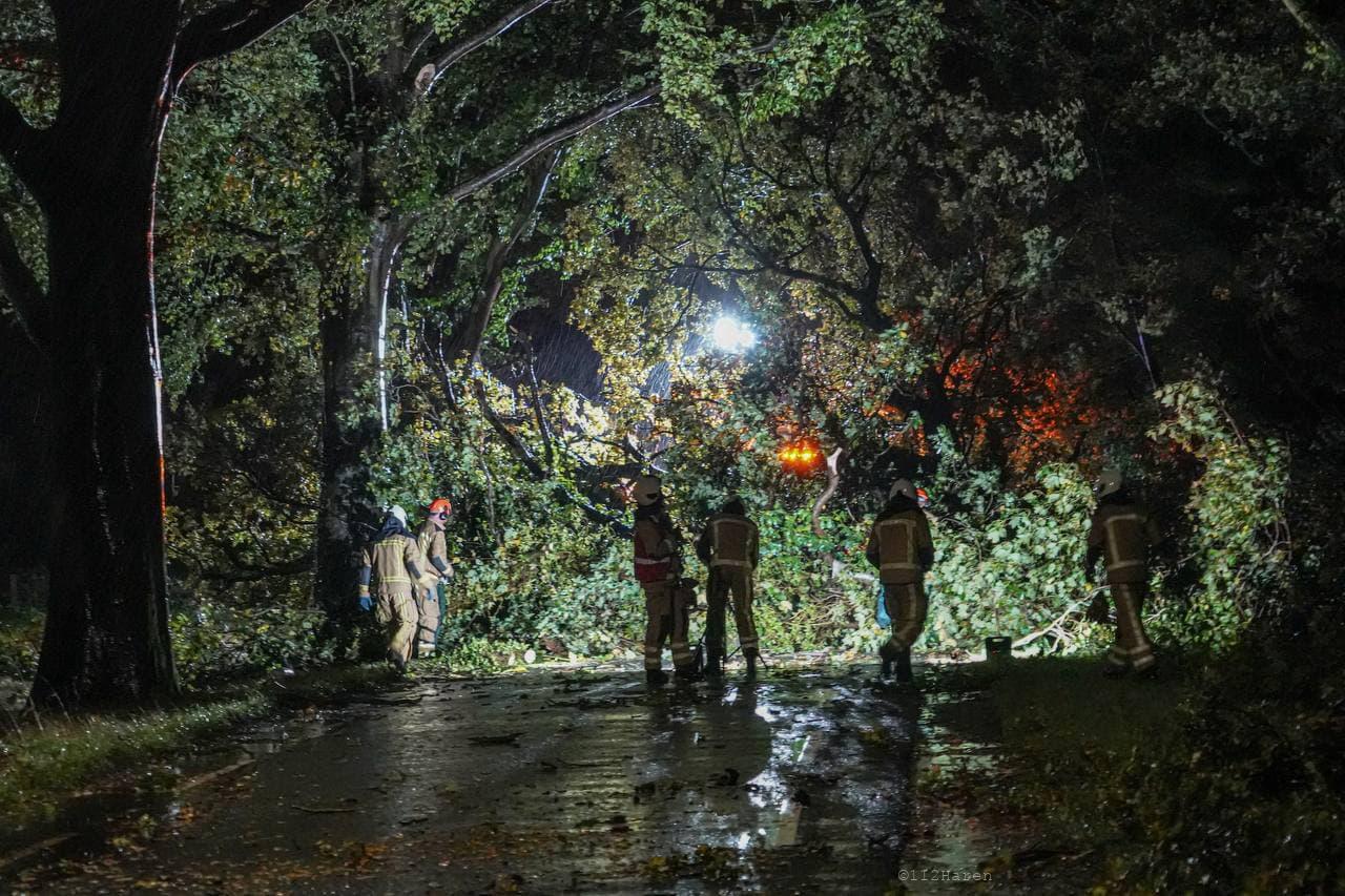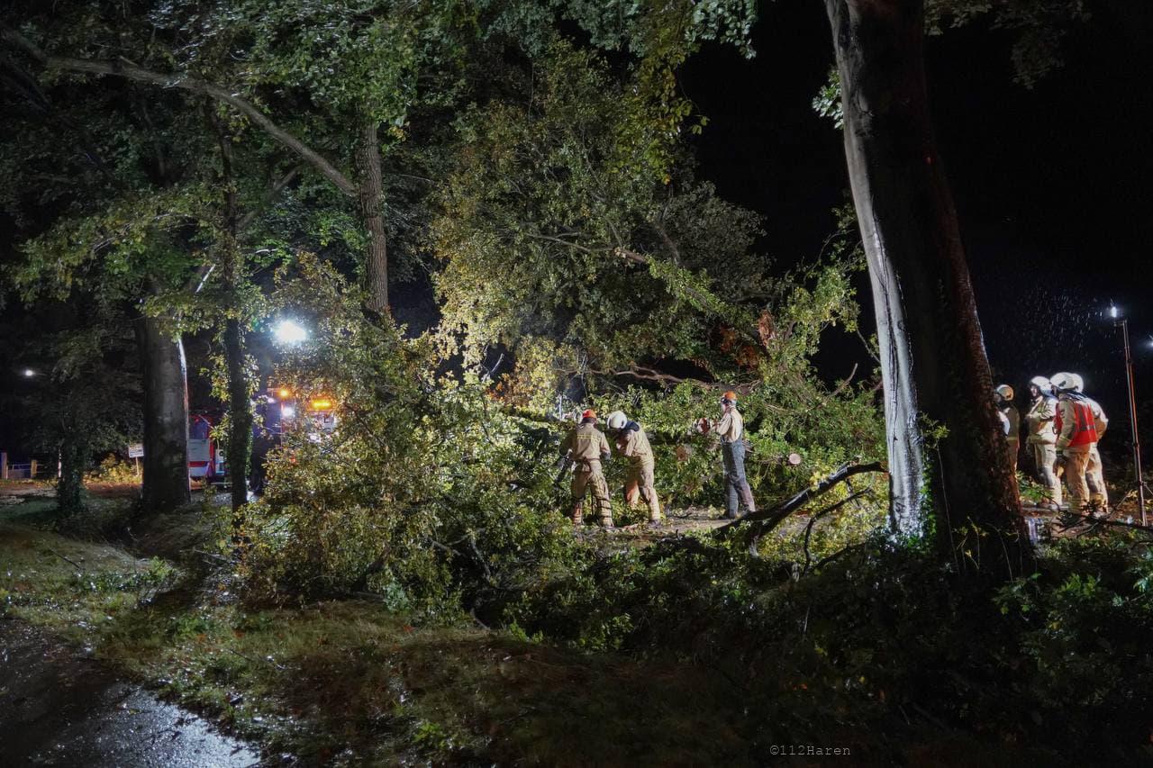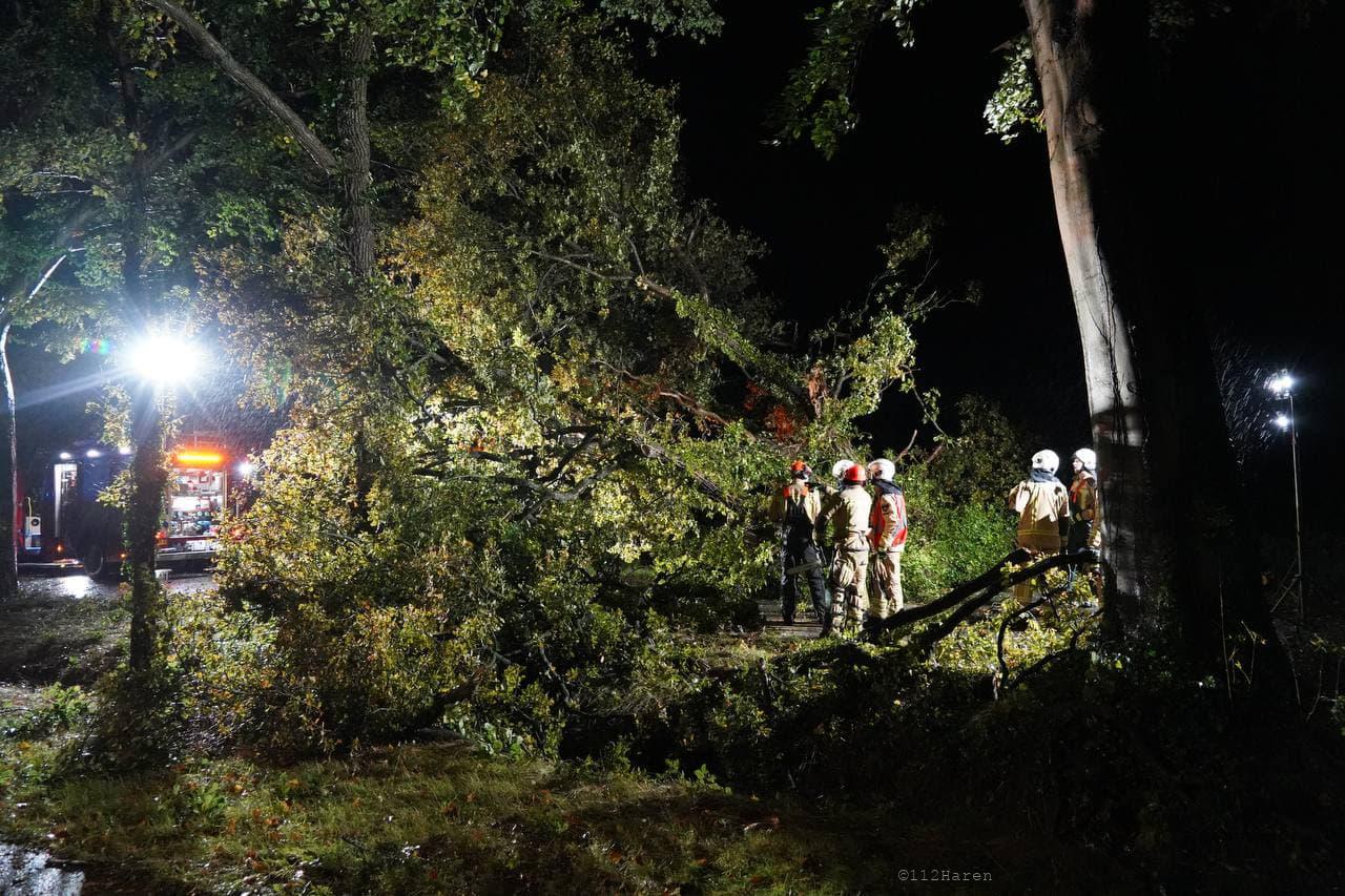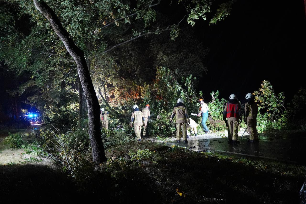 Daar bleek door de wind verschillende bomen te zijn omgewaaid. Ook waren er meerdere grote takken los gewaaid. De brandweer heeft de takken van het wegdek gehaald en de bomen in stukken gezaagd. De gemeente Groningen kwam met twee vrachtwagens met een laadbak ter plaatse om alle takken en stukken hout af te voeren. De weg was gedurende het incident afgesloten voor het verkeer.