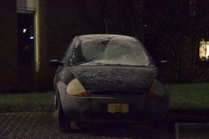 De voorruit van het voertuig is volledig in geslagen waardoor gebruik van deze auto niet meer mogelijk is.