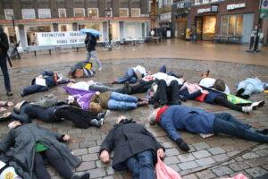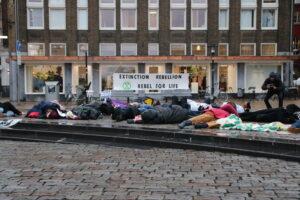 Groningen – Maandagmiddag om 12:01 uur is er een demonstratie gaande van Extinction Rebellion op de Vismarkt.