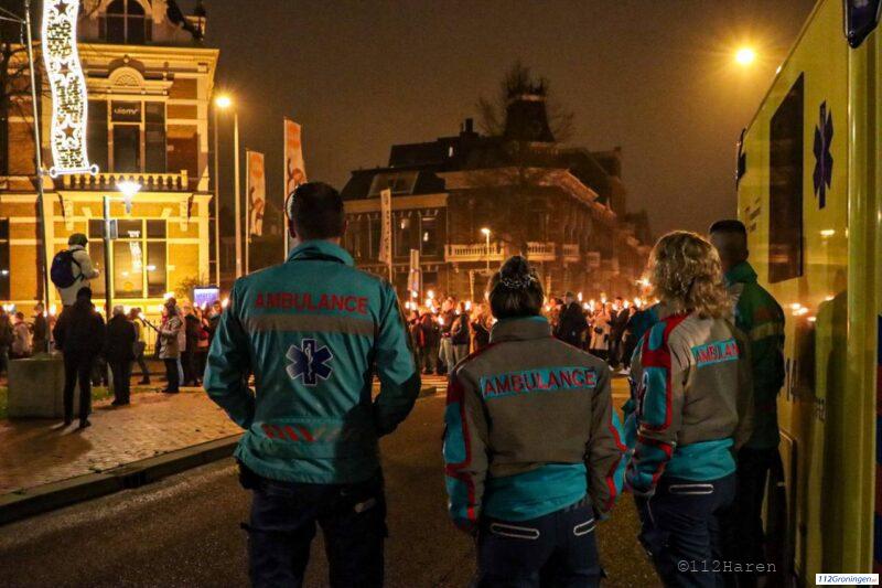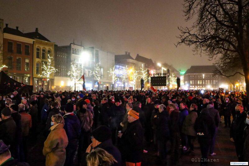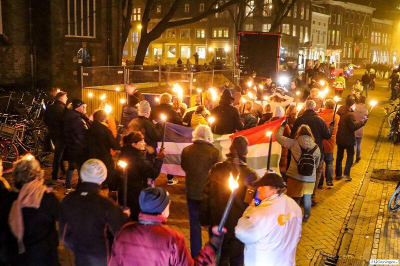 Groningen – De binnenstad van Groningen stroomt vol met mensen die zaterdagavond meelopen in de fakkeltocht. De fakkeltocht zou om 20:00 uur beginnen maar is eerder gestart omdat het erg druk is op de Vismarkt.
