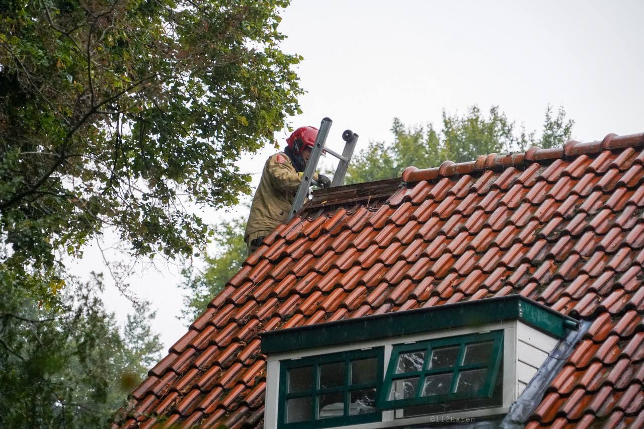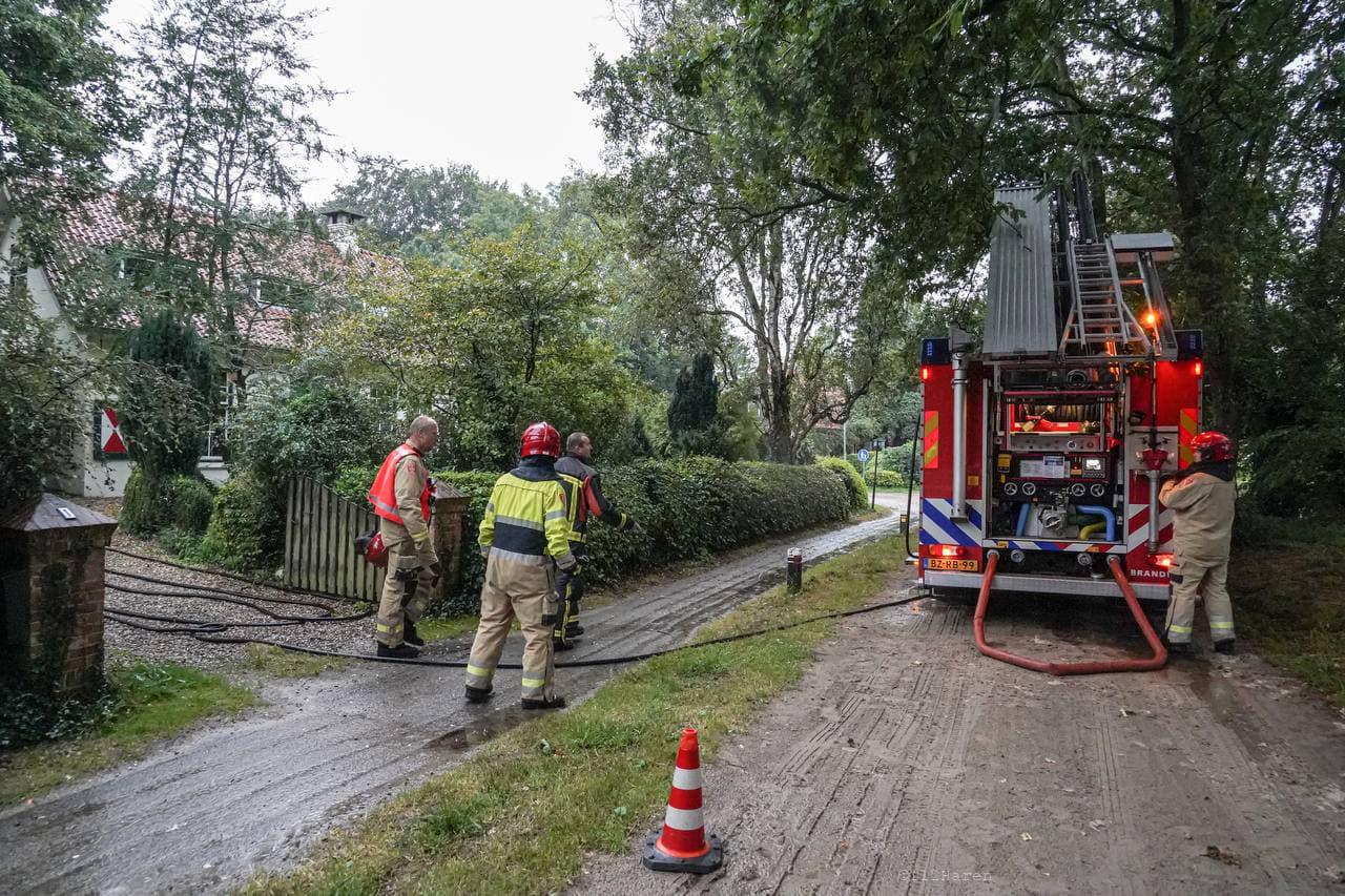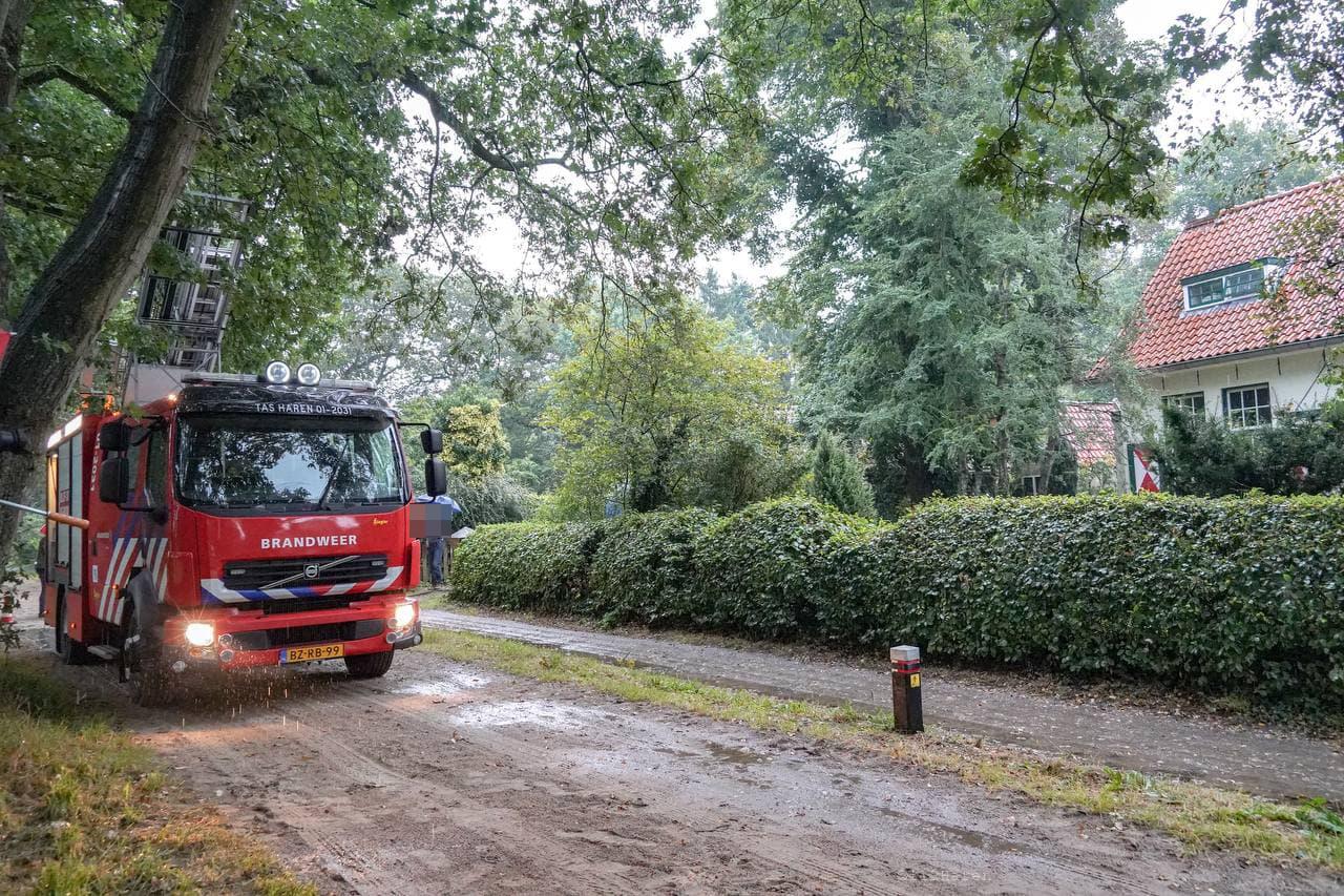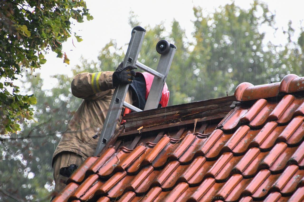 Bij een woning bleek een forse bliksem inslag te zijn geweest. Door de bliksem inslag waren er verschillende dakpannen van het dak gevallen. Ook waren bij de omliggende woningen de stoppen uit de meterkast geslagen.