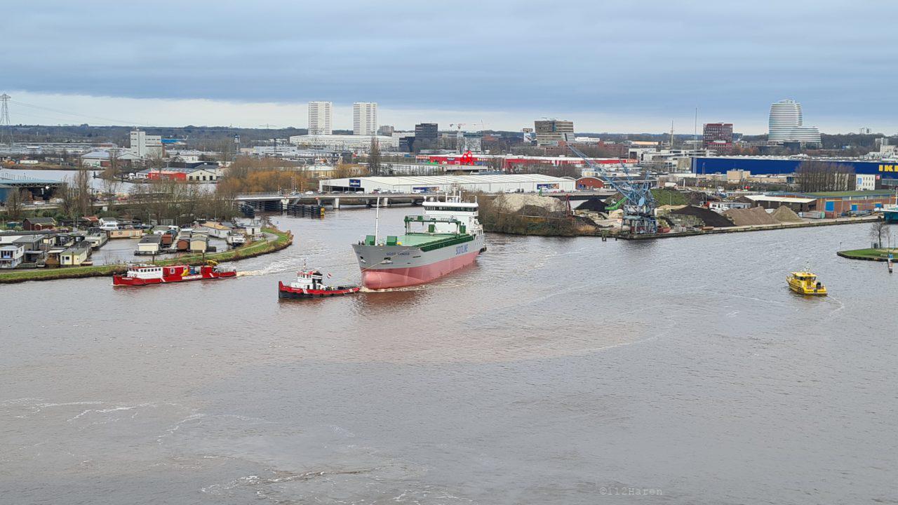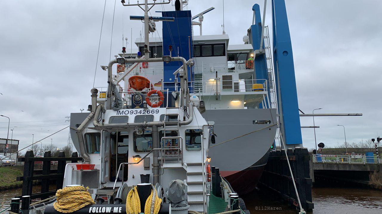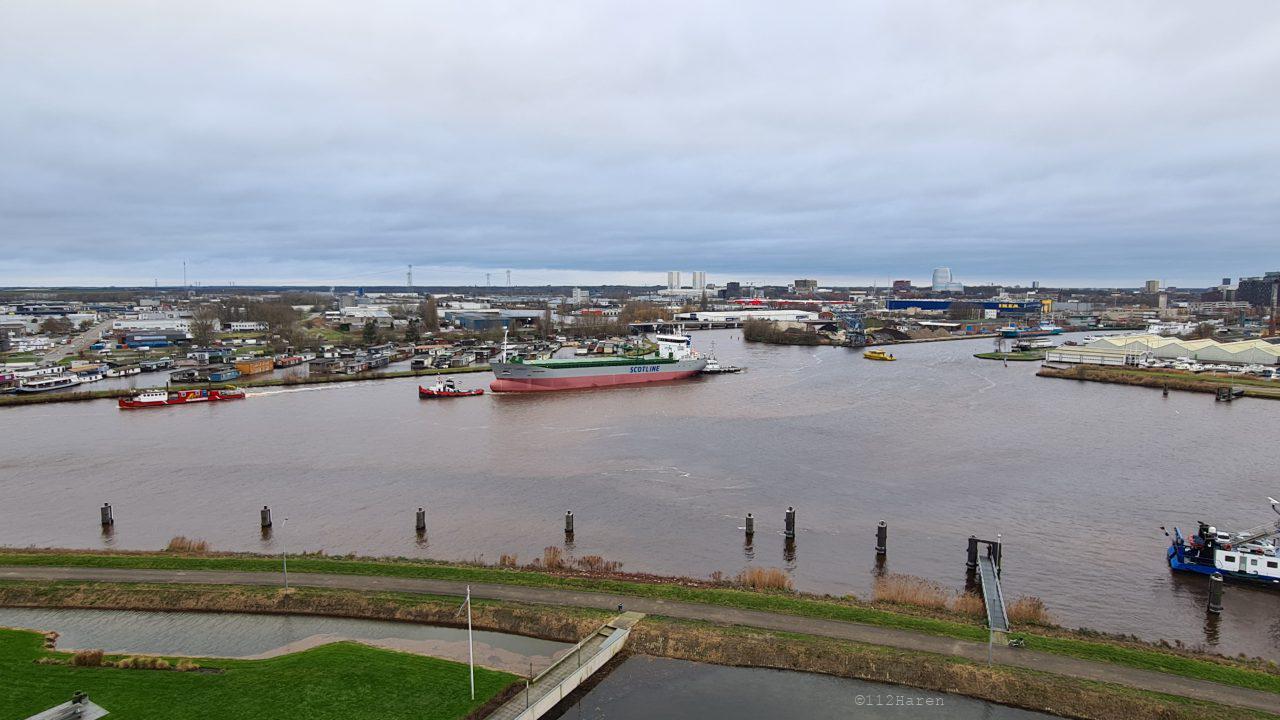 Groningen/ Haren – Een groot zeeschip van Royal Bodewes uit Hoogezand is maandagmorgen op Transport gegaan via het Winschoterdiep langs Haren en het Eemskanaal naar Delfzijl. Het zeeschip Scot Ranger heeft een lengte van 90 meter lang en is 15 meter breed en het gevaarte wordt met behulp van twee sleepboten geassisteerd door de bruggen en een sluis van maximaal 16 meter breed, op de ringweg zuid ontstond een file om 10:45 uur.