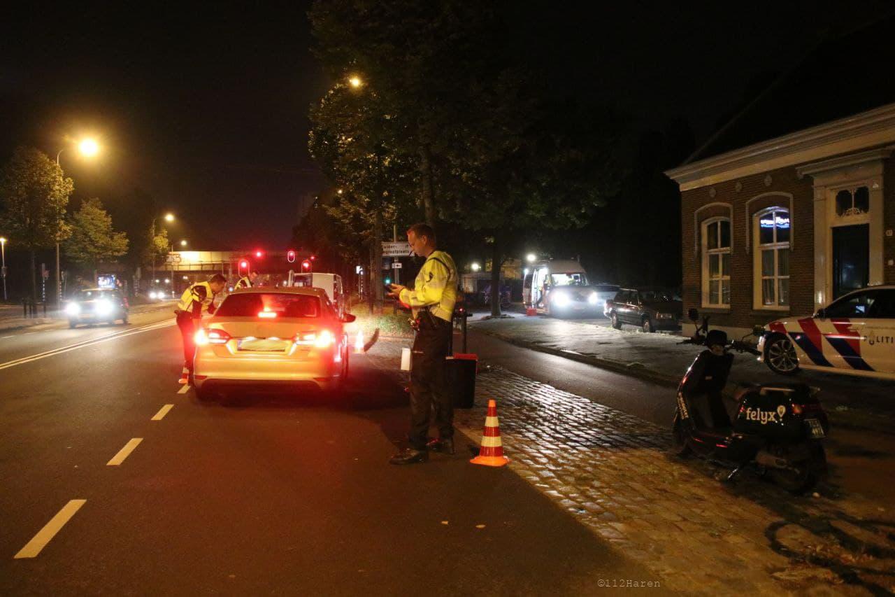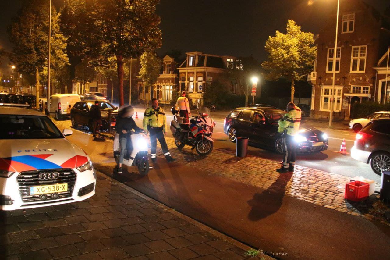 Bij de controle op de Aweg in de stad probeerde de bestuurder van een motorscooter de controle te omzeilen. De bestuurder ging er voor de politie vandoor. Na een achtervolging wisten politieagenten de bestuurder aan te houden. De bestuurder ging hierbij onderuit en kon na de val worden ingerekend.