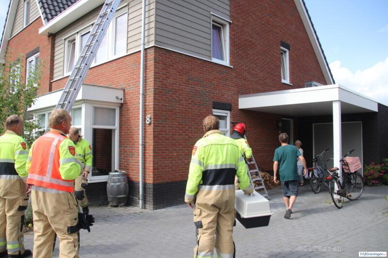 Haren – De brandweer van Haren werd maandagmiddag opgeroepen voor een melding van een dier op hoogte aan de Achterhoeskamp.