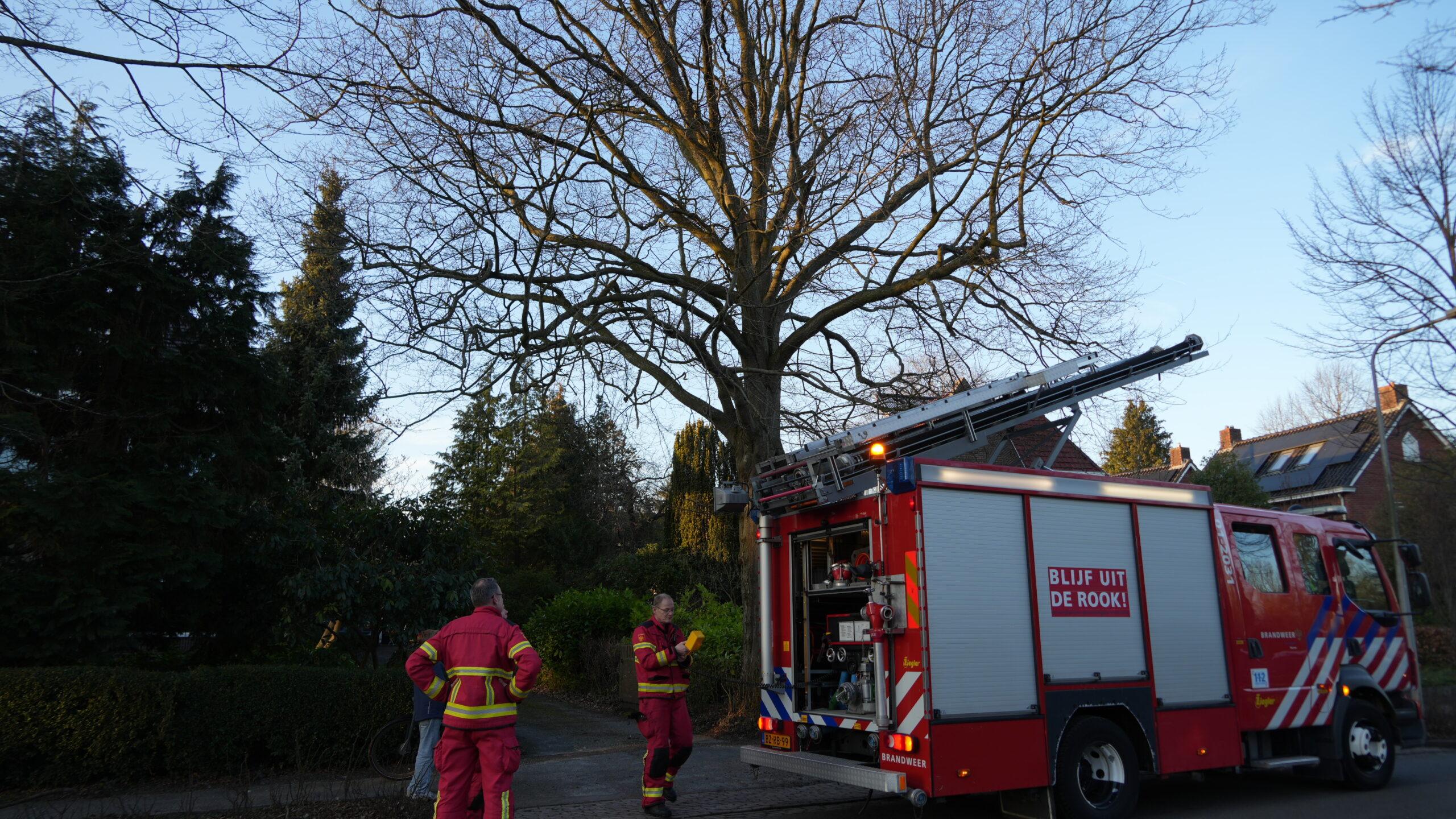 Haren – woensdagmiddag rond 17:03 uur is de brandweer opgeroepen voor een dier op hoogte aan de Molenweg in Haren. In een achtertuin bleek een kat in een boom te zitten en die er niet zelfstandig uit te kunnen komen.