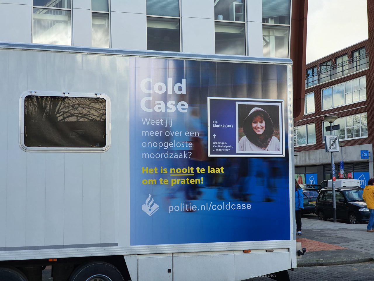Op bijna honderd locaties in de stad Groningen vraagt de politie vanaf maandag 18 januari 2021 om tips in het onderzoek naar de dood van de 33-jarige Els Slurink, nu bijna 24 jaar geleden. Het communicatieoffensief is het eerste in de nieuwe landelijke aanpak van cold cases, met als motto ‘Het is nooit te laat om te praten!’.
