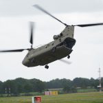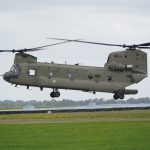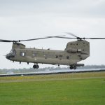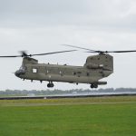 Eelde – De nieuwe Chinook-transporthelikopter van Defensie heeft maandagmiddag op Groningen Airport Eelde een tussenstop gemaakt.