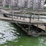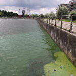 De foto’s zijn gemaakt vanuit de wijk Hoornse Meer, vanaf de Gasthuiskade. Het water op deze plek kleurt groen en geel van de blauwalg. De website zwemwater.nl waarschuwt sinds vrijdag voor blauwalgen in het Paterswoldsemeer. Voor het meer geldt niet een negatief zwemadvies maar wel een waarschuwing. Zwemmen in water met blauwalg kan leiden tot huidirritatie en maag- en darmklachten.