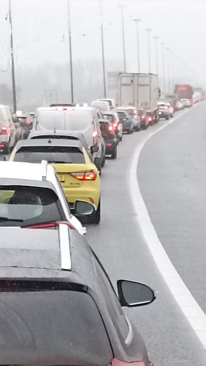 Ongeval met meerdere voertuigen op de A28 nabij Eelde, file