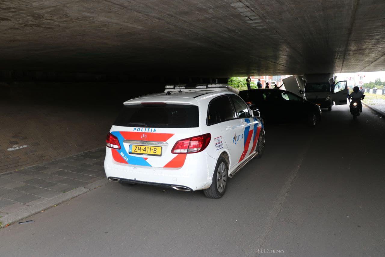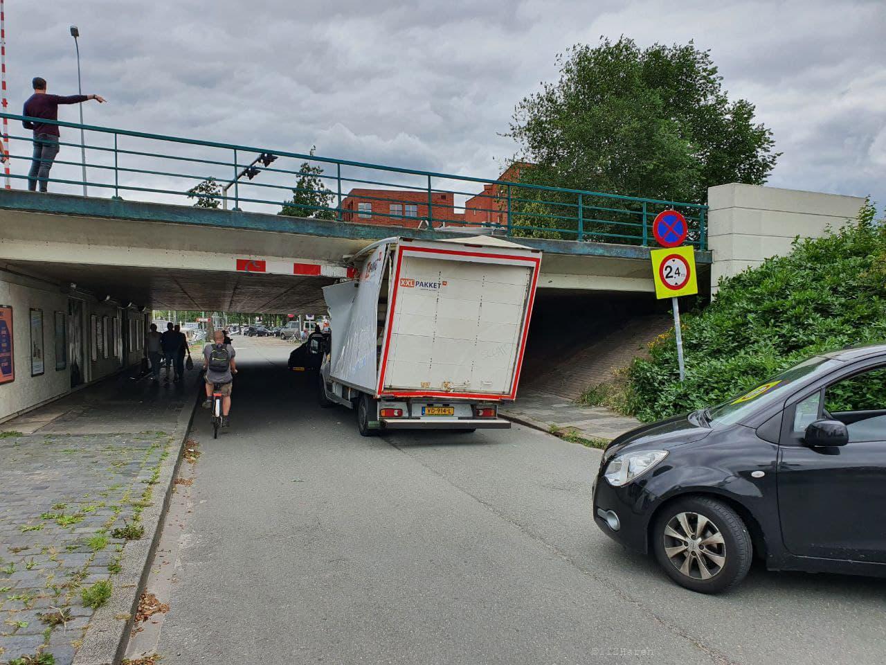 Groningen – Was het viaduct nu te laag of de auto te hoog? Bij de Oosterkade in de stad heeft dinsdagmiddag om 16:25 uur een bestelbusje zich klemgereden onder het bekende viaduct van de Oosterhavenbrug.