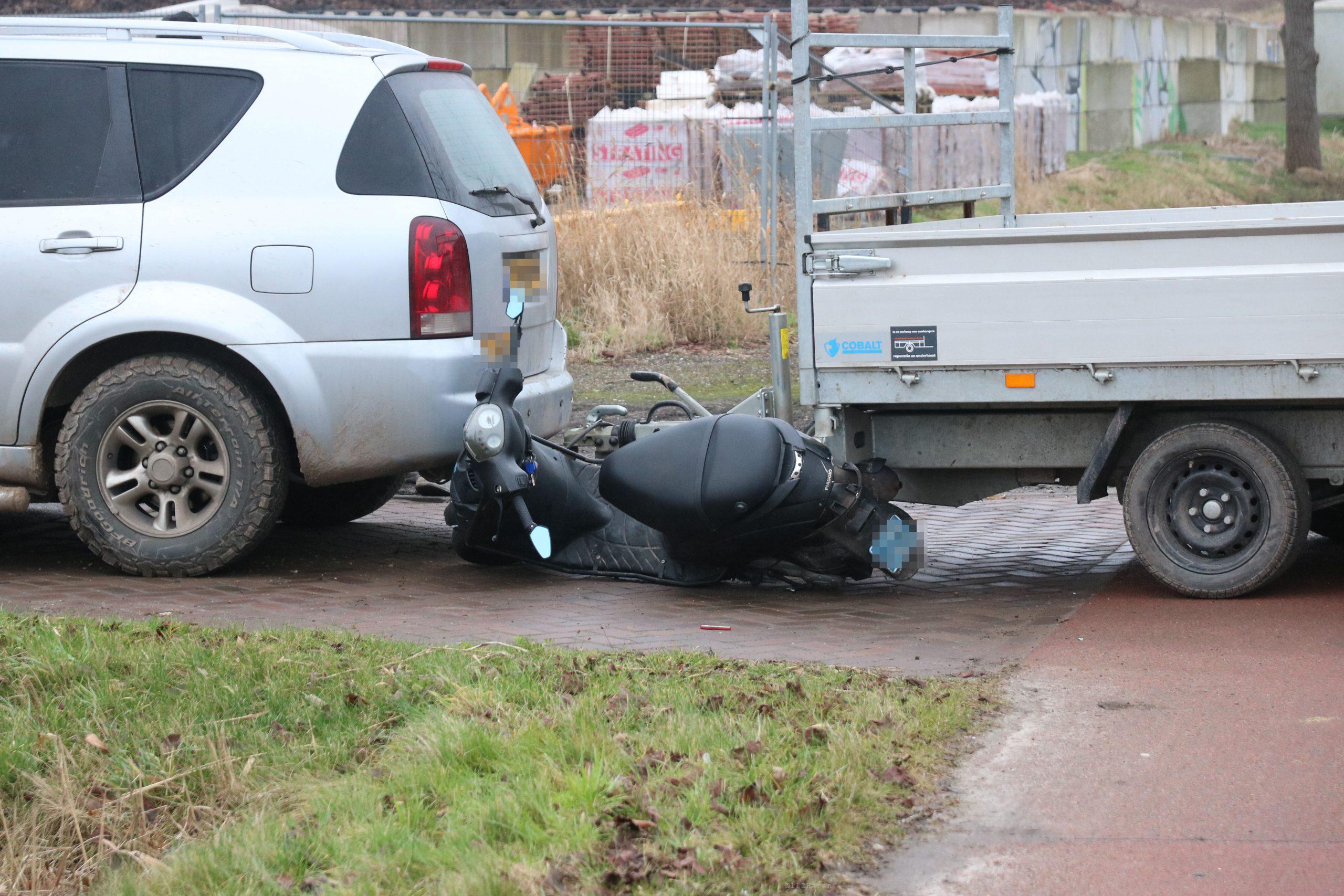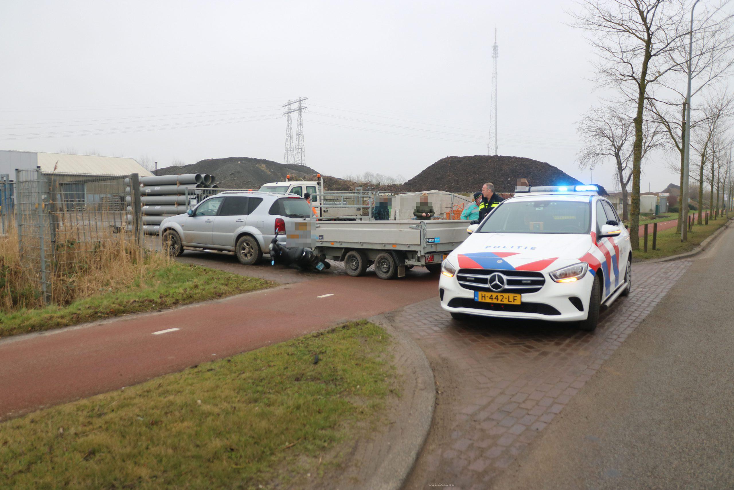 De toedracht is niet bekend. De bestuurder van de scooter raakte hierbij lichtgewond en werd in een ambulance gecontroleerd. De scooter kwam klem te zitten onder de aanhanger. De politie zet de aanrijding op papier.