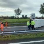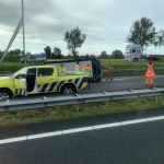 Zuidbroek – Op de A7 nabij de afrit Zuidbroek in de richting van Duitsland is woensdagmorgen een bestelwagen met aanhanger gekanteld. Niemand raakte daarbij gewond.