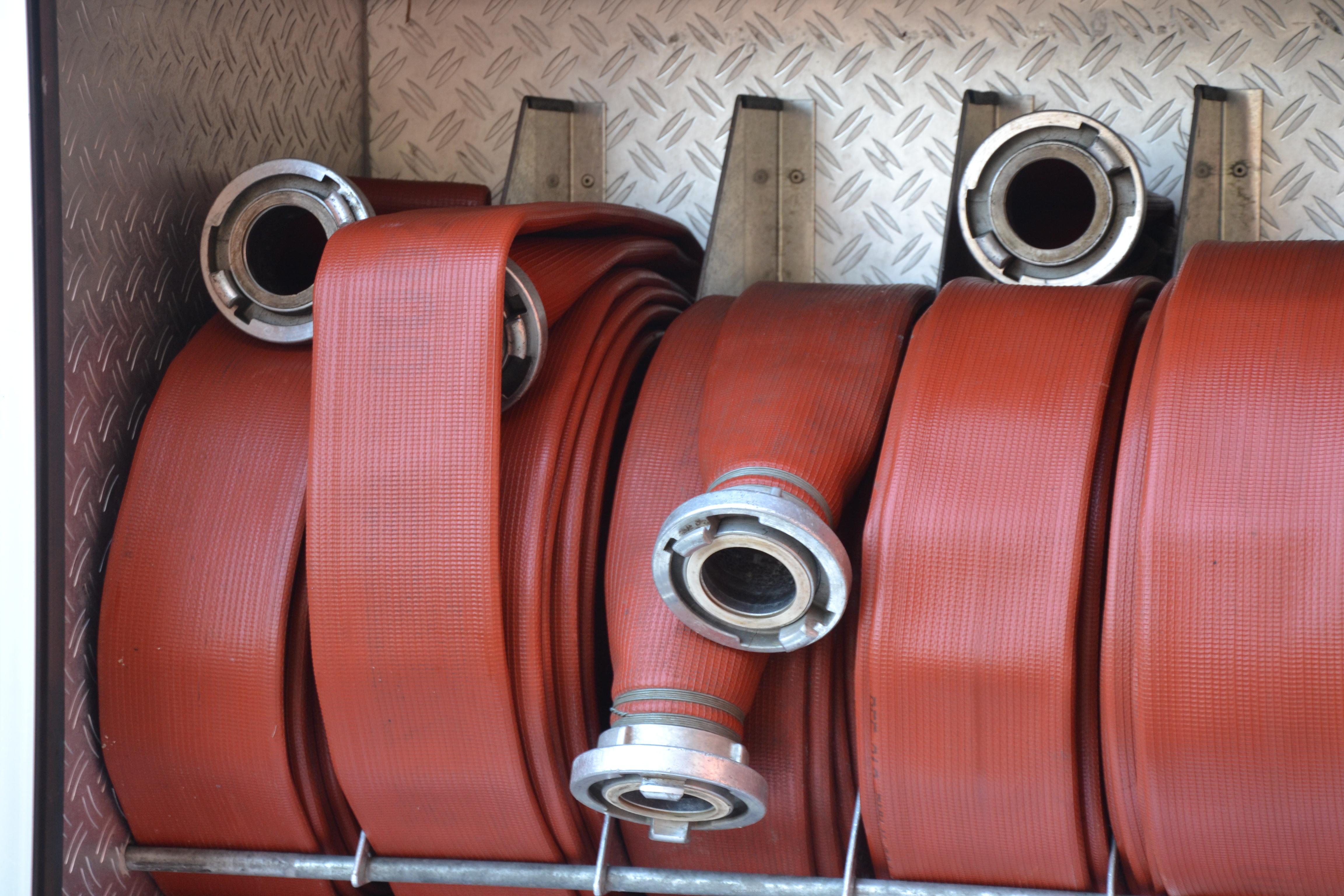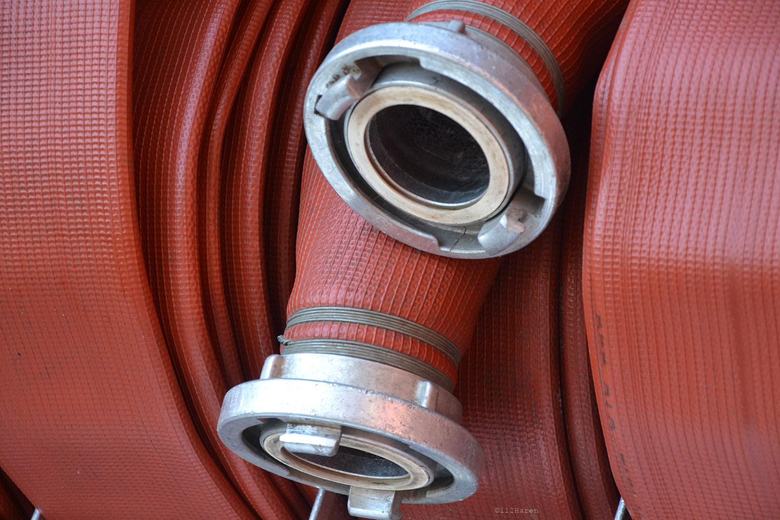 Met behulp van brandslangen en flink wat spierkracht wist de brandweer het dier uiteindelijk uit de sloot te trekken.