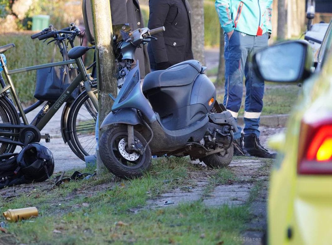 Scooterrijder botst tegen lantaarnpaal in Haren