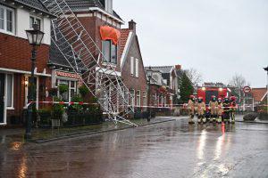 Zoals hier aan de de Hoofdstraat in Bad Nieuweschans, daar kwam een steiger op het dak van een woning terecht. De brandweer assisteerde en zorgde weer voor een veilige plek.