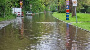Haren – Door het vele regen hadden de putten in Haren het zaterdagmiddag zwaar zoals o.a. de Vondellaan in Haren. Vele straten stonden blank en putten raakten los.