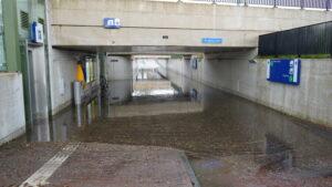 Update: De schade aan een perron van het station van Haren lijkt mee te vallen. Het betreffende perron was wat verzakt na een wolkbreuk die het dorp zaterdagmiddag trof. ‘Misschien dat er een gedeelte van het perron wordt afgezet, maar de treinen gaan zo weer rijden’, aldus ProRail-woordvoerder Joke van der Cruysen. Meldt Rtvnoord.