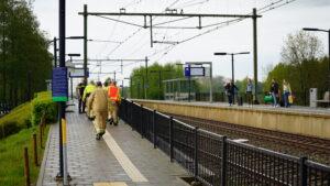 Het riool kolkte erover. In korte tijd viel er veel regen. ProRail onderzoekt een verzakking van een perron op het station in Haren. Deze zou zaterdagmiddag gebeurd zijn na een wolkbreuk.