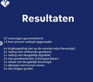 Hierbij viel het op dat veel aanhangwagens niet aan de juiste eisen voldeden. Denk hierbij aan het niet (juist) afdekken van de lading, niet goed zekeren van de lading en het onjuist koppelen van de aanhanger.