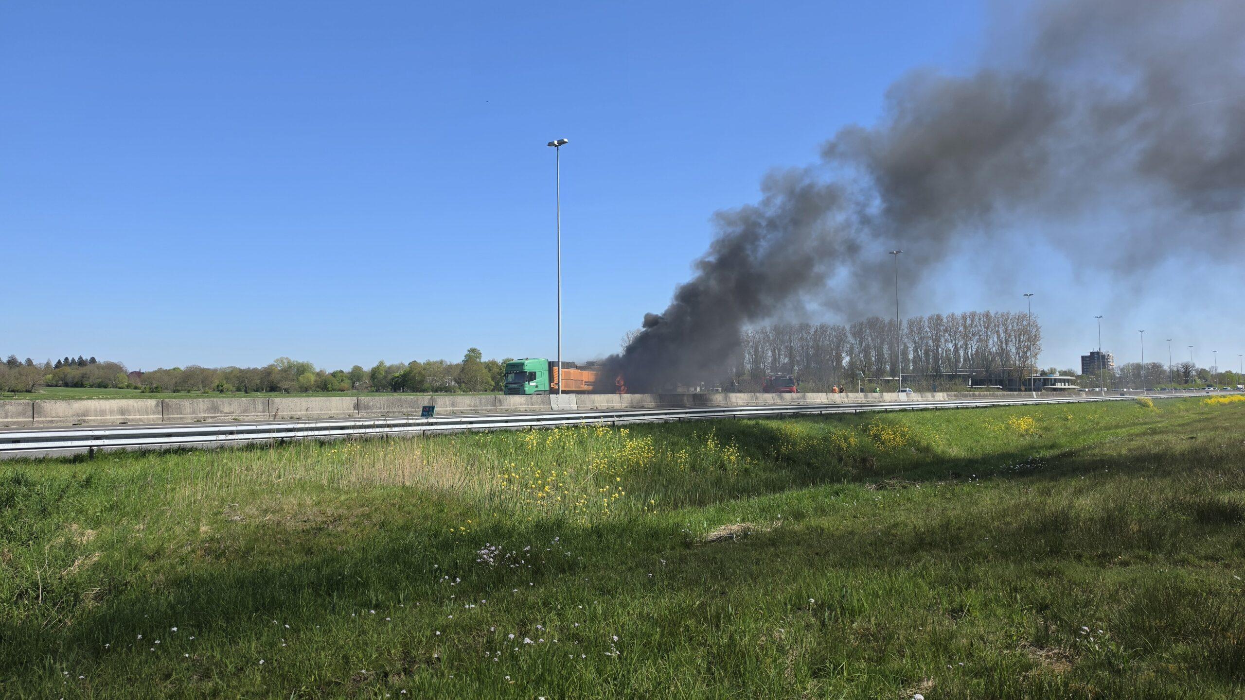 Groningen – Op de A28 tussen Haren en Groningen stond woensdagmiddag een vrachtwagen in brand. Hulpdiensten zijn ter plaatse. Er kwam veel rook vrij.