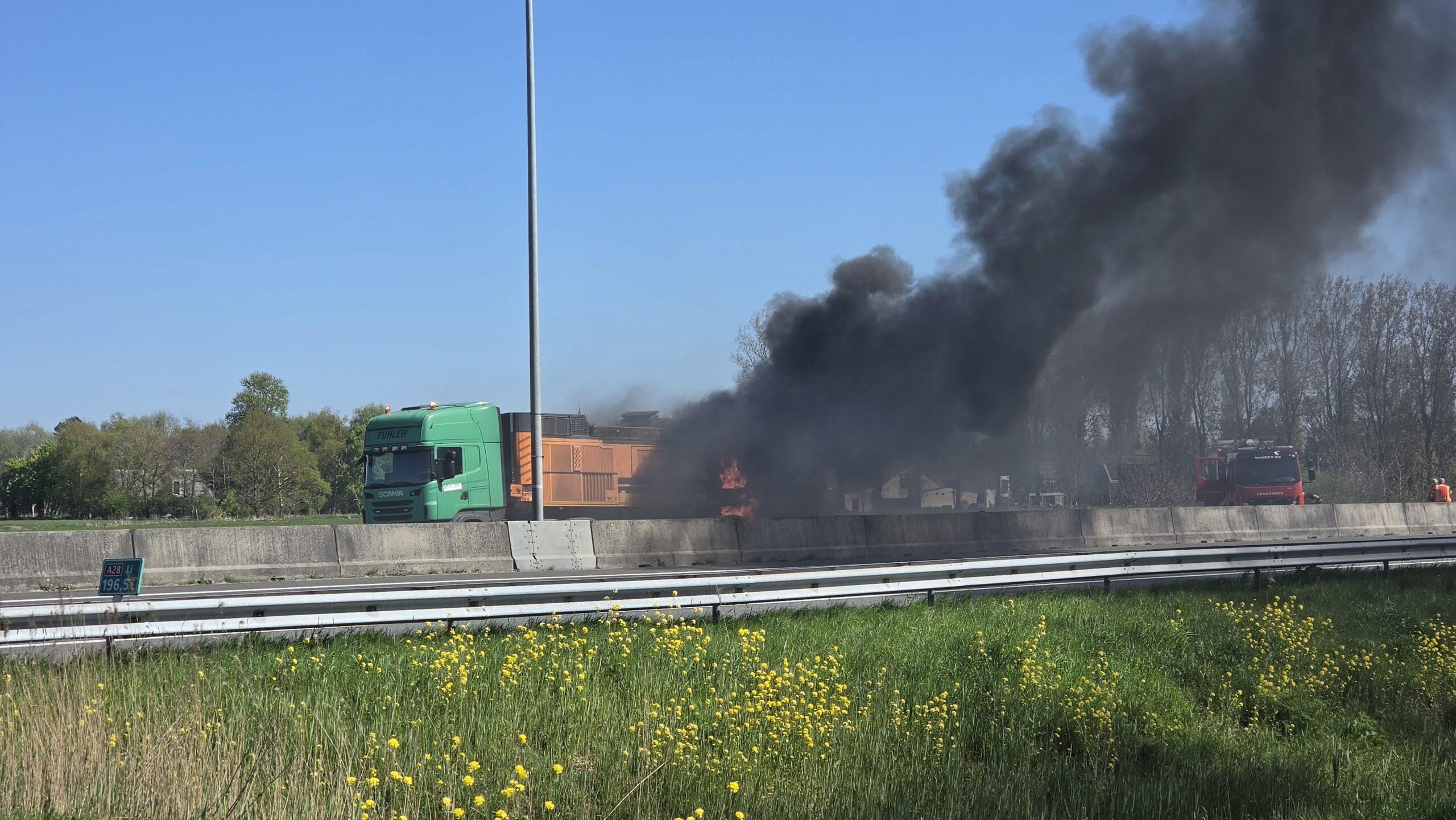Vrachtwagen vat vlam op de A28