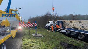 Volgens Rijkswaterstaat kan het bergen nog tot na de middag duren. Het verkeer wordt omgeleid via binnendoor wegen. De verwachting is dat rond 13:15 uur de werkzaamheden klaar zijn.