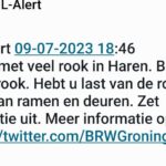 De rook van de brand trekt over Haren heen, De brandweer adviseert ramen en deuren gesloten te houden.